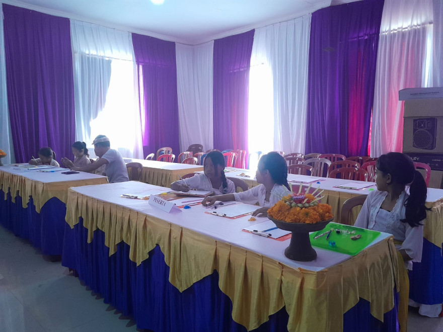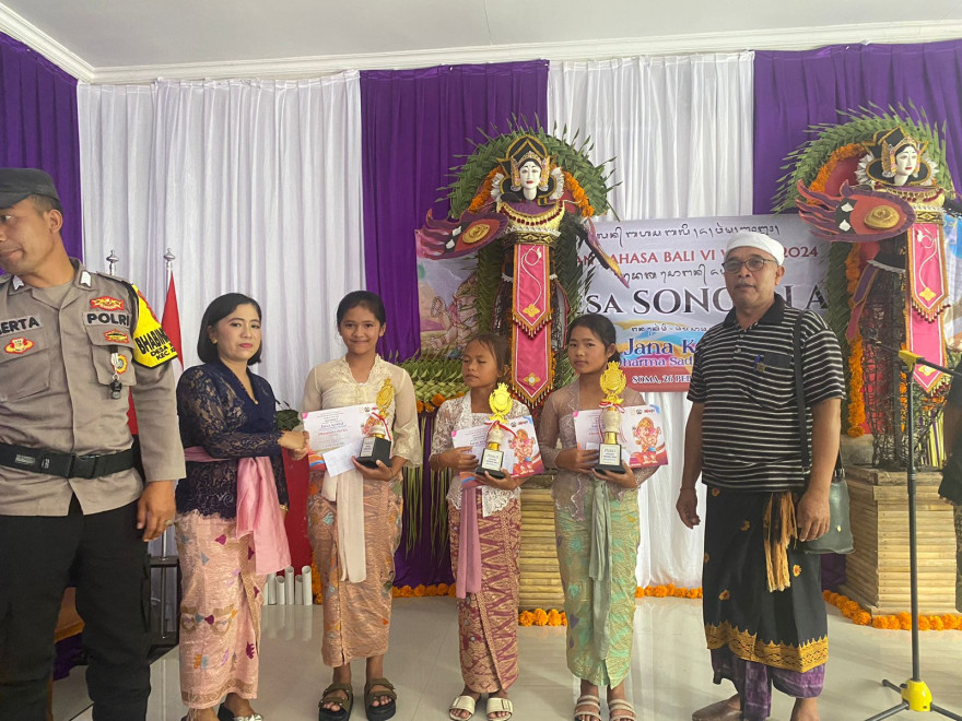 Adapun bulan bahasa Bali VI ini di meriahkan  dan dibuka dengan tarian puspanjali dari siswa SD dan lomba yang di adakan yaitu pertama lomba Nyurat/ Menulis Aksara Bali oleh anak SD, kedua lomba Ngwacen/ Membaca Puisi  Bali oleh  Anak SMP . Tujuan  dari  bulan bahasa Bali ini adalah untuk melestarikan bahasa dan budaya Bali.